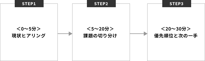30分の標準的な流れをご紹介します。(会議ツール:zoom)